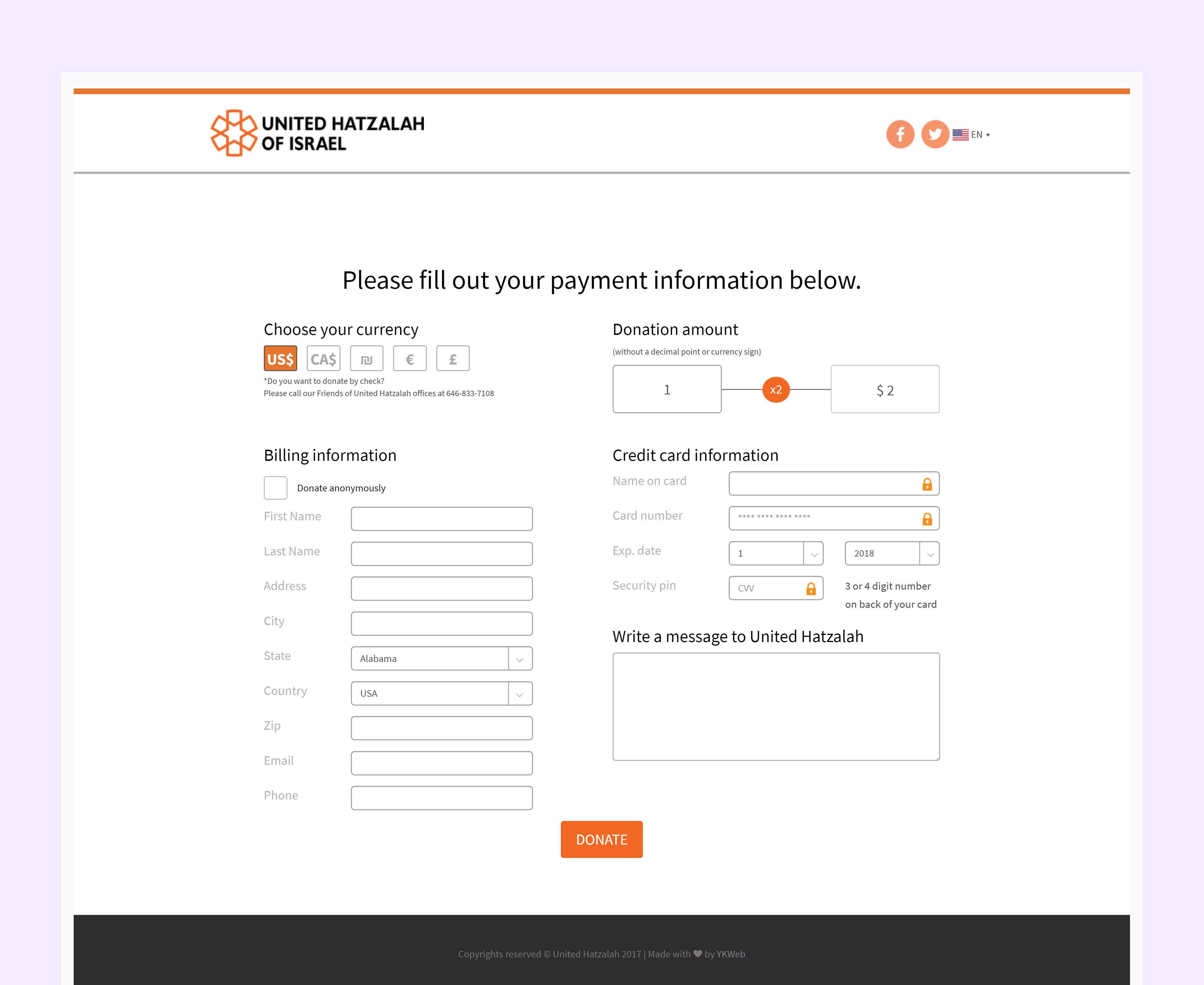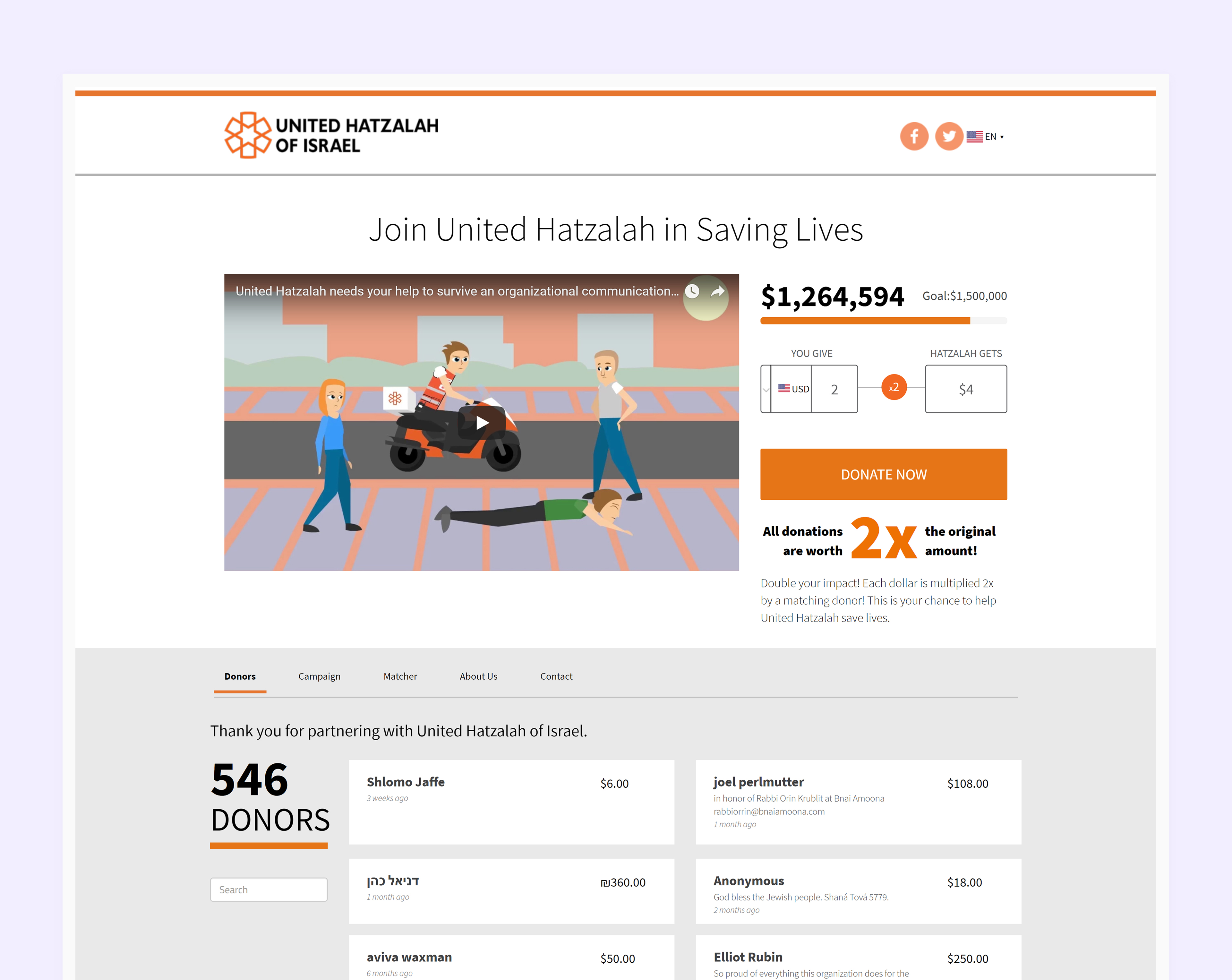 In 2017, I started working for United Hatzalah as a developer with the YKWeb team. With many websites for the various different bodies within the organization, one of the main tasks was the maintenance and development of their online donation forms which, as a volunteer service, make up a crucial part of Hatzalah's ability to operate. The websites are mostly built with PHP and incorporate Wordpress as well as Javascript and a custom payment API for interacting with different Stripe, Paypal and Authorize accounts.